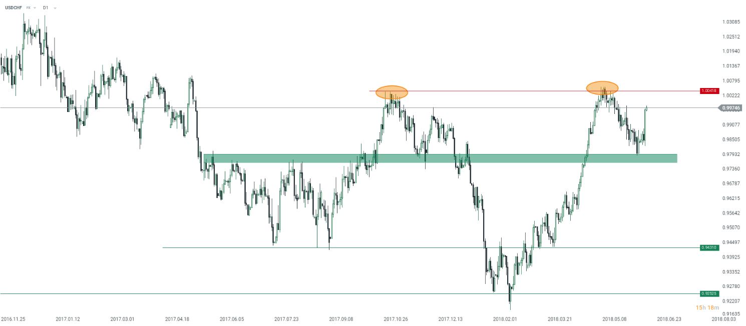 USDCHF wyraźnie wzrósł wczorajszego dnia. Czy szykuje się nam kolejne testowanie kluczowego oporu? Źródło: xStation5
