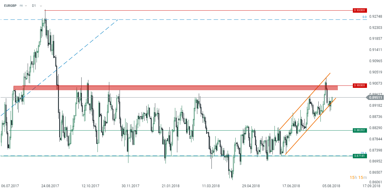 Para EURGBP odbija się od dolnego ograniczenia kanału przed publikacją danych odnośnie sprzedaży detalicznej w lipcu w Wielkiej Brytanii. Źródło: xStation5.
