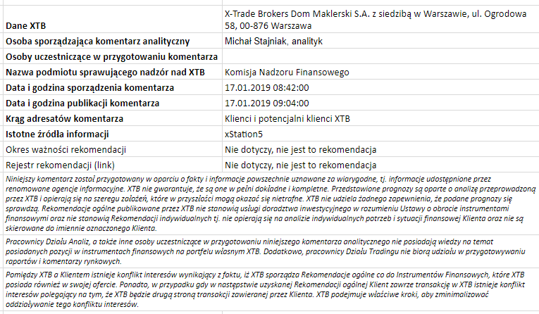 Ta publikacja handlowa jest informacyjna i edukacyjna. Nie jest rekomendacją inwestycyjną ani informacją rekomendującą lub sugerującą strategię inwestycyjną. W materiale nie sugerujemy żadnej strategii inwestycyjnej ani nie świadczymy usługi doradztwa inwestycyjnego. Materiał nie uwzględnia indywidualnej sytuacji finansowej, potrzeb i celów inwestycyjnych klienta. Nie jest też ofertą sprzedaży ani subskrypcji. Nie jest zaproszeniem do nabycia, reklamą ani promocją jakichkolwiek instrumentów finansowych. Publikację handlową przygotowaliśmy starannie i obiektywnie. Przedstawiamy stan faktyczny znany autorom w chwili tworzenia dokumentu. Nie umieszczamy w nim żadnych elementów oceniających. Informacje i badania oparte na historycznych danych lub wynikach oraz prognozy nie stanowią pewnego wskaźnika na przyszłość. Nie odpowiadamy za Twoje działania lub zaniechania, zwłaszcza za to, że zdecydujesz się nabyć lub zbyć instrumenty finansowe na podstawie informacji z tej publikacji handlowej. Nie odpowiadamy też za szkody, które mogą wynikać z bezpośredniego czy też pośredniego wykorzystania tych informacji. Inwestowanie jest ryzykowne. Inwestuj odpowiedzialnie.