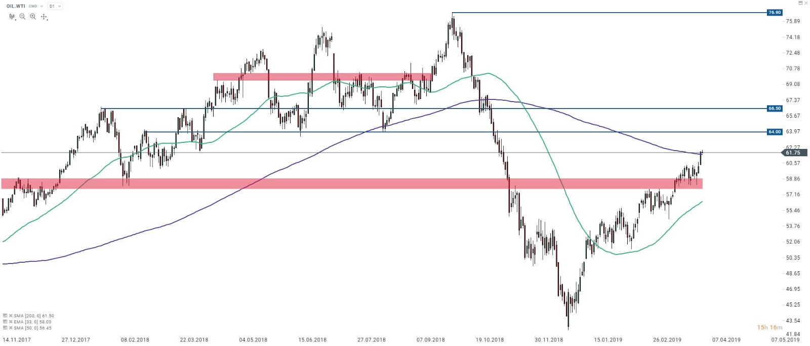 22:40 - USA/ropa - szacunki API. Wczorajszy powrót do aktywów ryzykownych pomógł również ropie naftowej, która zaliczyła wyjście na najwyższe poziomy od połowy grudnia. Również, problemy w Wenezueli wspomagają kupujących. WTI handluje obecnie powyżej średniej 200-dniowej. Dzisiejsze szacunki mają pokazać zgodnie z konsensusem spadek o 1,1 mln brk. Czy dane dadzą bodziec do dalszych wzrostów na ropie?