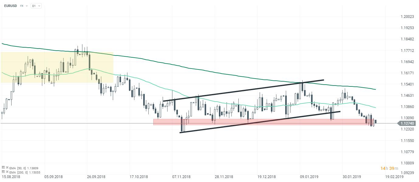 Para EURUSD testowała w ostatnich dniach ważną strefę, która znajduje się między 1,127 a 1,130. Para walutowa rozpoczęła piątkowy handel lekkim spadkiem - dolar amerykański powoli odrabia straty po publikacji dotyczące sprzedaży detalicznej. Źródło: xStation5.