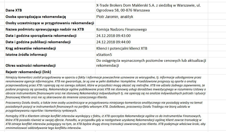Ta publikacja handlowa jest informacyjna i edukacyjna. Nie jest rekomendacją inwestycyjną ani informacją rekomendującą lub sugerującą strategię inwestycyjną. W materiale nie sugerujemy żadnej strategii inwestycyjnej ani nie świadczymy usługi doradztwa inwestycyjnego. Materiał nie uwzględnia indywidualnej sytuacji finansowej, potrzeb i celów inwestycyjnych klienta. Nie jest też ofertą sprzedaży ani subskrypcji. Nie jest zaproszeniem do nabycia, reklamą ani promocją jakichkolwiek instrumentów finansowych. Publikację handlową przygotowaliśmy starannie i obiektywnie. Przedstawiamy stan faktyczny znany autorom w chwili tworzenia dokumentu. Nie umieszczamy w nim żadnych elementów oceniających. Informacje i badania oparte na historycznych danych lub wynikach oraz prognozy nie stanowią pewnego wskaźnika na przyszłość. Nie odpowiadamy za Twoje działania lub zaniechania, zwłaszcza za to, że zdecydujesz się nabyć lub zbyć instrumenty finansowe na podstawie informacji z tej publikacji handlowej. Nie odpowiadamy też za szkody, które mogą wynikać z bezpośredniego czy też pośredniego wykorzystania tych informacji. Inwestowanie jest ryzykowne. Inwestuj odpowiedzialnie.