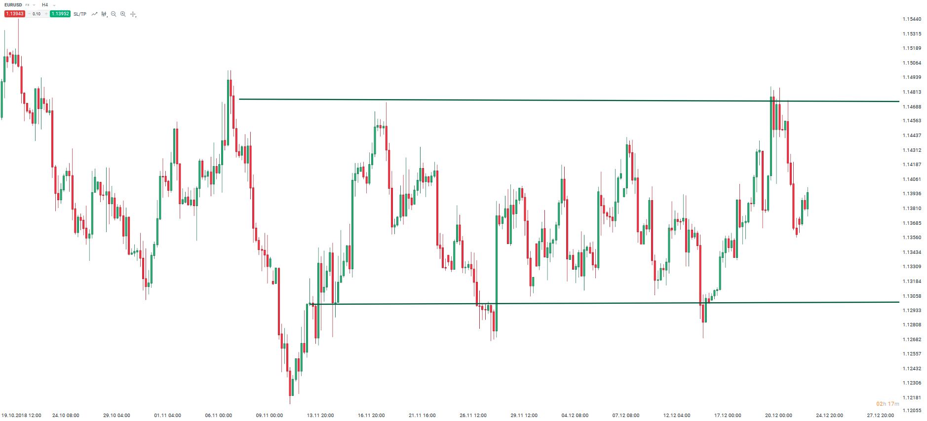 EURUSD wchodzi w okres świąteczny przebywając w szerokiej konsolidacji pomiędzy 1,1300 a 1,1480. Źródło: xStation5.