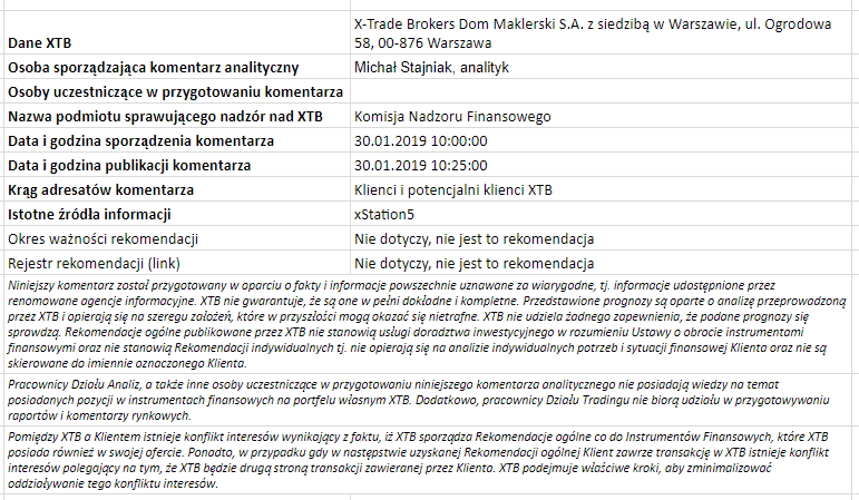 Ta publikacja handlowa jest informacyjna i edukacyjna. Nie jest rekomendacją inwestycyjną ani informacją rekomendującą lub sugerującą strategię inwestycyjną. W materiale nie sugerujemy żadnej strategii inwestycyjnej ani nie świadczymy usługi doradztwa inwestycyjnego. Materiał nie uwzględnia indywidualnej sytuacji finansowej, potrzeb i celów inwestycyjnych klienta. Nie jest też ofertą sprzedaży ani subskrypcji. Nie jest zaproszeniem do nabycia, reklamą ani promocją jakichkolwiek instrumentów finansowych. Publikację handlową przygotowaliśmy starannie i obiektywnie. Przedstawiamy stan faktyczny znany autorom w chwili tworzenia dokumentu. Nie umieszczamy w nim żadnych elementów oceniających. Informacje i badania oparte na historycznych danych lub wynikach oraz prognozy nie stanowią pewnego wskaźnika na przyszłość. Nie odpowiadamy za Twoje działania lub zaniechania, zwłaszcza za to, że zdecydujesz się nabyć lub zbyć instrumenty finansowe na podstawie informacji z tej publikacji handlowej. Nie odpowiadamy też za szkody, które mogą wynikać z bezpośredniego czy też pośredniego wykorzystania tych informacji. Inwestowanie jest ryzykowne. Inwestuj odpowiedzialnie.