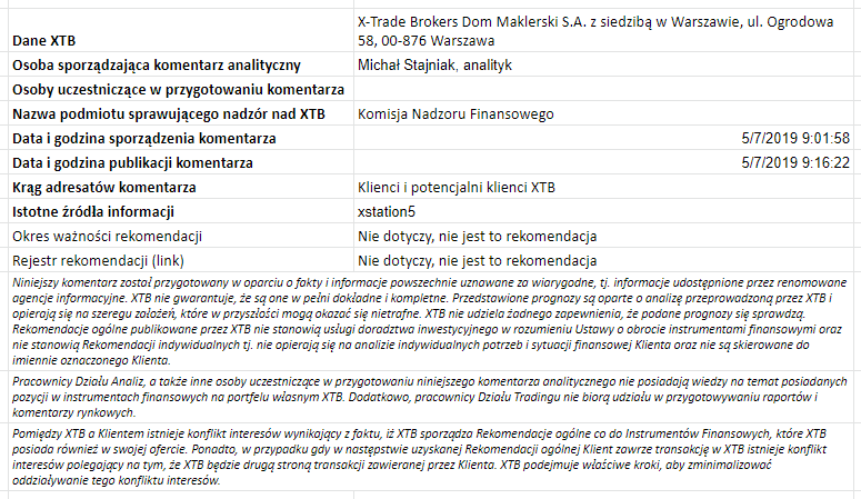 Ta publikacja handlowa jest informacyjna i edukacyjna. Nie jest rekomendacją inwestycyjną ani informacją rekomendującą lub sugerującą strategię inwestycyjną. W materiale nie sugerujemy żadnej strategii inwestycyjnej ani nie świadczymy usługi doradztwa inwestycyjnego. Materiał nie uwzględnia indywidualnej sytuacji finansowej, potrzeb i celów inwestycyjnych klienta. Nie jest też ofertą sprzedaży ani subskrypcji. Nie jest zaproszeniem do nabycia, reklamą ani promocją jakichkolwiek instrumentów finansowych. Publikację handlową przygotowaliśmy starannie i obiektywnie. Przedstawiamy stan faktyczny znany autorom w chwili tworzenia dokumentu. Nie umieszczamy w nim żadnych elementów oceniających. Informacje i badania oparte na historycznych danych lub wynikach oraz prognozy nie stanowią pewnego wskaźnika na przyszłość. Nie odpowiadamy za Twoje działania lub zaniechania, zwłaszcza za to, że zdecydujesz się nabyć lub zbyć instrumenty finansowe na podstawie informacji z tej publikacji handlowej. Nie odpowiadamy też za szkody, które mogą wynikać z bezpośredniego czy też pośredniego wykorzystania tych informacji. Inwestowanie jest ryzykowne. Inwestuj odpowiedzialnie.