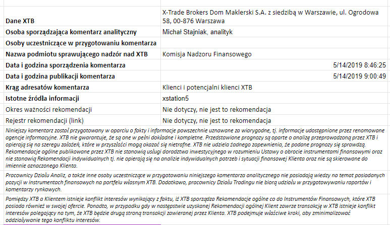 Ta publikacja handlowa jest informacyjna i edukacyjna. Nie jest rekomendacją inwestycyjną ani informacją rekomendującą lub sugerującą strategię inwestycyjną. W materiale nie sugerujemy żadnej strategii inwestycyjnej ani nie świadczymy usługi doradztwa inwestycyjnego. Materiał nie uwzględnia indywidualnej sytuacji finansowej, potrzeb i celów inwestycyjnych klienta. Nie jest też ofertą sprzedaży ani subskrypcji. Nie jest zaproszeniem do nabycia, reklamą ani promocją jakichkolwiek instrumentów finansowych. Publikację handlową przygotowaliśmy starannie i obiektywnie. Przedstawiamy stan faktyczny znany autorom w chwili tworzenia dokumentu. Nie umieszczamy w nim żadnych elementów oceniających. Informacje i badania oparte na historycznych danych lub wynikach oraz prognozy nie stanowią pewnego wskaźnika na przyszłość. Nie odpowiadamy za Twoje działania lub zaniechania, zwłaszcza za to, że zdecydujesz się nabyć lub zbyć instrumenty finansowe na podstawie informacji z tej publikacji handlowej. Nie odpowiadamy też za szkody, które mogą wynikać z bezpośredniego czy też pośredniego wykorzystania tych informacji. Inwestowanie jest ryzykowne. Inwestuj odpowiedzialnie.