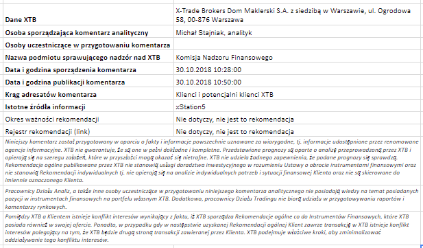 Ta publikacja handlowa jest informacyjna i edukacyjna. Nie jest rekomendacją inwestycyjną ani informacją rekomendującą lub sugerującą strategię inwestycyjną. W materiale nie sugerujemy żadnej strategii inwestycyjnej ani nie świadczymy usługi doradztwa inwestycyjnego. Materiał nie uwzględnia indywidualnej sytuacji finansowej, potrzeb i celów inwestycyjnych klienta. Nie jest też ofertą sprzedaży ani subskrypcji. Nie jest zaproszeniem do nabycia, reklamą ani promocją jakichkolwiek instrumentów finansowych. Publikację handlową przygotowaliśmy starannie i obiektywnie. Przedstawiamy stan faktyczny znany autorom w chwili tworzenia dokumentu. Nie umieszczamy w nim żadnych elementów oceniających. Informacje i badania oparte na historycznych danych lub wynikach oraz prognozy nie stanowią pewnego wskaźnika na przyszłość. Nie odpowiadamy za Twoje działania lub zaniechania, zwłaszcza za to, że zdecydujesz się nabyć lub zbyć instrumenty finansowe na podstawie informacji z tej publikacji handlowej. Nie odpowiadamy też za szkody, które mogą wynikać z bezpośredniego czy też pośredniego wykorzystania tych informacji. Inwestowanie jest ryzykowne. Inwestuj odpowiedzialnie.