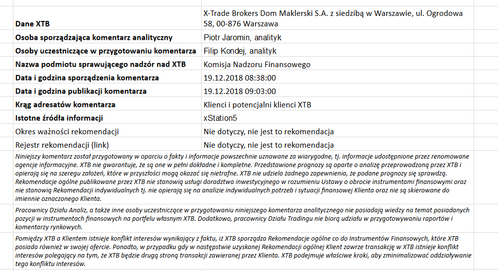 Ta publikacja handlowa jest informacyjna i edukacyjna. Nie jest rekomendacją inwestycyjną ani informacją rekomendującą lub sugerującą strategię inwestycyjną. W materiale nie sugerujemy żadnej strategii inwestycyjnej ani nie świadczymy usługi doradztwa inwestycyjnego. Materiał nie uwzględnia indywidualnej sytuacji finansowej, potrzeb i celów inwestycyjnych klienta. Nie jest też ofertą sprzedaży ani subskrypcji. Nie jest zaproszeniem do nabycia, reklamą ani promocją jakichkolwiek instrumentów finansowych. Publikację handlową przygotowaliśmy starannie i obiektywnie. Przedstawiamy stan faktyczny znany autorom w chwili tworzenia dokumentu. Nie umieszczamy w nim żadnych elementów oceniających. Informacje i badania oparte na historycznych danych lub wynikach oraz prognozy nie stanowią pewnego wskaźnika na przyszłość. Nie odpowiadamy za Twoje działania lub zaniechania, zwłaszcza za to, że zdecydujesz się nabyć lub zbyć instrumenty finansowe na podstawie informacji z tej publikacji handlowej. Nie odpowiadamy też za szkody, które mogą wynikać z bezpośredniego czy też pośredniego wykorzystania tych informacji. Inwestowanie jest ryzykowne. Inwestuj odpowiedzialnie.