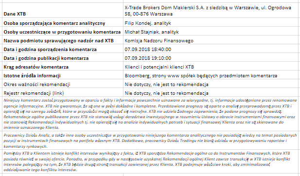 Ta publikacja handlowa jest informacyjna i edukacyjna. Nie jest rekomendacją inwestycyjną ani informacją rekomendującą lub sugerującą strategię inwestycyjną. W materiale nie sugerujemy żadnej strategii inwestycyjnej ani nie świadczymy usługi doradztwa inwestycyjnego. Materiał nie uwzględnia indywidualnej sytuacji finansowej, potrzeb i celów inwestycyjnych klienta. Nie jest też ofertą sprzedaży ani subskrypcji. Nie jest zaproszeniem do nabycia, reklamą ani promocją jakichkolwiek instrumentów finansowych. Publikację handlową przygotowaliśmy starannie i obiektywnie. Przedstawiamy stan faktyczny znany autorom w chwili tworzenia dokumentu. Nie umieszczamy w nim żadnych elementów oceniających. Informacje i badania oparte na historycznych danych lub wynikach oraz prognozy nie stanowią pewnego wskaźnika na przyszłość. Nie odpowiadamy za Twoje działania lub zaniechania, zwłaszcza za to, że zdecydujesz się nabyć lub zbyć instrumenty finansowe na podstawie informacji z tej publikacji handlowej. Nie odpowiadamy też za szkody, które mogą wynikać z bezpośredniego czy też pośredniego wykorzystania tych informacji. Inwestowanie jest ryzykowne. Inwestuj odpowiedzialnie.