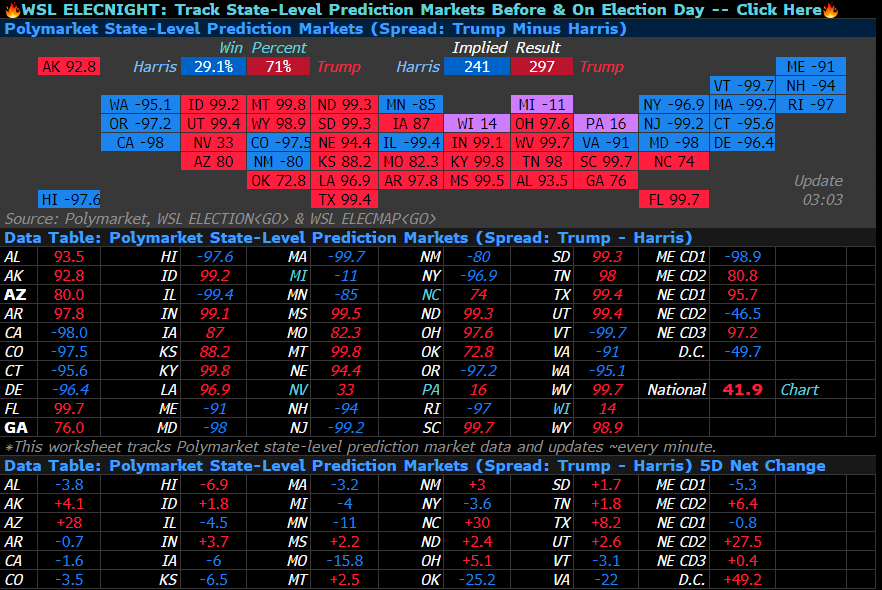 Według oficjalnych danych AP News Trump prowadzi 177 do 99, jednak żaden z wahających się stanów nie został jeszcze określony.