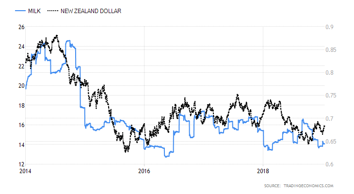 Ceny mleka w USA znajdują się blisko ekstremalnych minimów. Wzrosty cen w Nowej Zelandii mogą sugerować poprawę sytuacji na globalnym rynku mleka. Źródło: Trading Economics