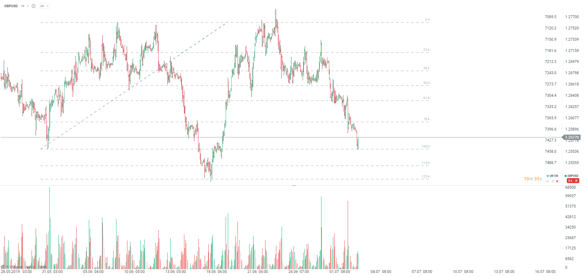 GBPUSD odbija od ważnego wsparcia, pomimo bardzo negatywnego wydźwięku danych. Źródło: xStation5