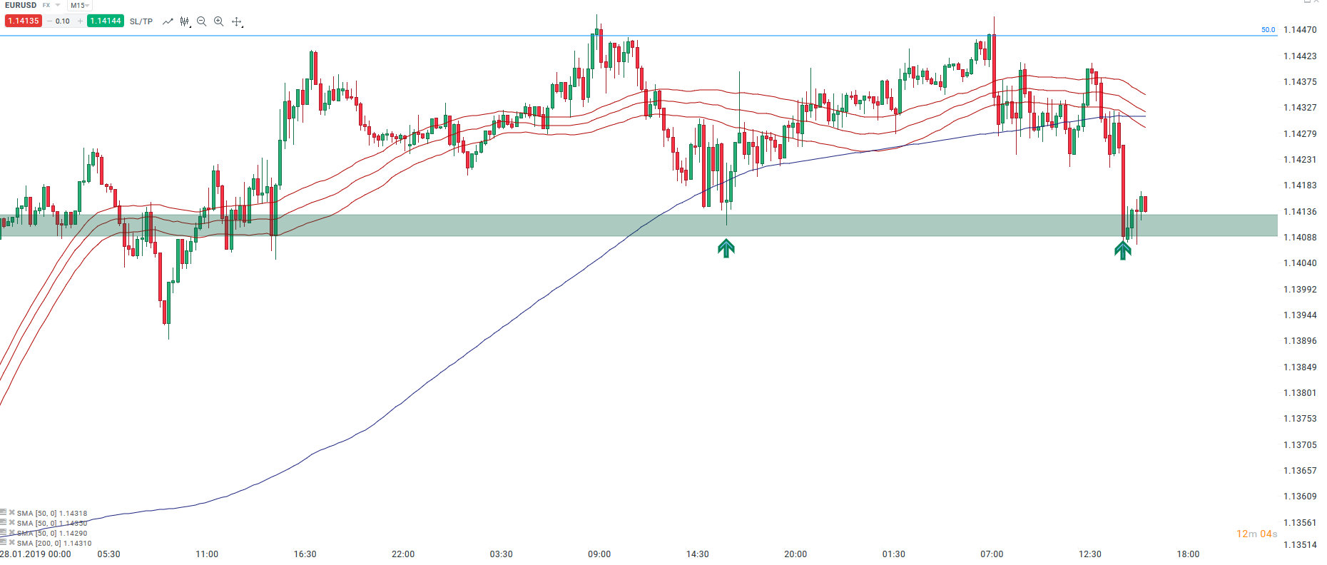 O godzinie 14:15 poznaliśmy lepszy raport ADP, który pokazał solidny wzrost zatrudnienia, co pomogło dolarowi, jednak słabe dane z rynku nieruchomości nie napawają optymizmem, a EURUSD odbija od dolnej bandy zakresu ostatniej zmienności. Źródło: xStation5.