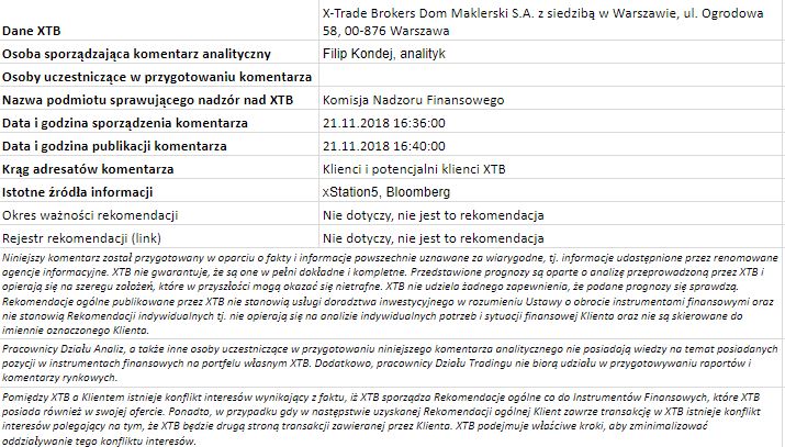 Ta publikacja handlowa jest informacyjna i edukacyjna. Nie jest rekomendacją inwestycyjną ani informacją rekomendującą lub sugerującą strategię inwestycyjną. W materiale nie sugerujemy żadnej strategii inwestycyjnej ani nie świadczymy usługi doradztwa inwestycyjnego. Materiał nie uwzględnia indywidualnej sytuacji finansowej, potrzeb i celów inwestycyjnych klienta. Nie jest też ofertą sprzedaży ani subskrypcji. Nie jest zaproszeniem do nabycia, reklamą ani promocją jakichkolwiek instrumentów finansowych. Publikację handlową przygotowaliśmy starannie i obiektywnie. Przedstawiamy stan faktyczny znany autorom w chwili tworzenia dokumentu. Nie umieszczamy w nim żadnych elementów oceniających. Informacje i badania oparte na historycznych danych lub wynikach oraz prognozy nie stanowią pewnego wskaźnika na przyszłość. Nie odpowiadamy za Twoje działania lub zaniechania, zwłaszcza za to, że zdecydujesz się nabyć lub zbyć instrumenty finansowe na podstawie informacji z tej publikacji handlowej. Nie odpowiadamy też za szkody, które mogą wynikać z bezpośredniego czy też pośredniego wykorzystania tych informacji. Inwestowanie jest ryzykowne. Inwestuj odpowiedzialnie.