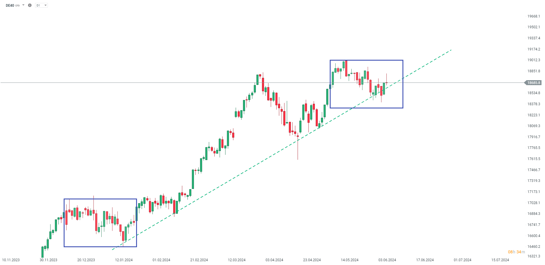 Zmienność na rynkach zmniejszyła się w ostatnich minutach. EURUSD minimalnie poniżej 1,0800. DE40 redukuje poprzednie wzrosty, ale pozostaje blisko wczorajszego zamknięcia: