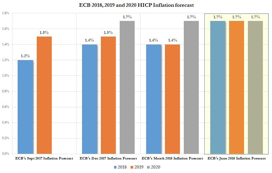 Prognozy inflacyjne w EBC podniesione, co powinno być pozytywne dla europejskiej waluty. Źródło: EBC, Twitter