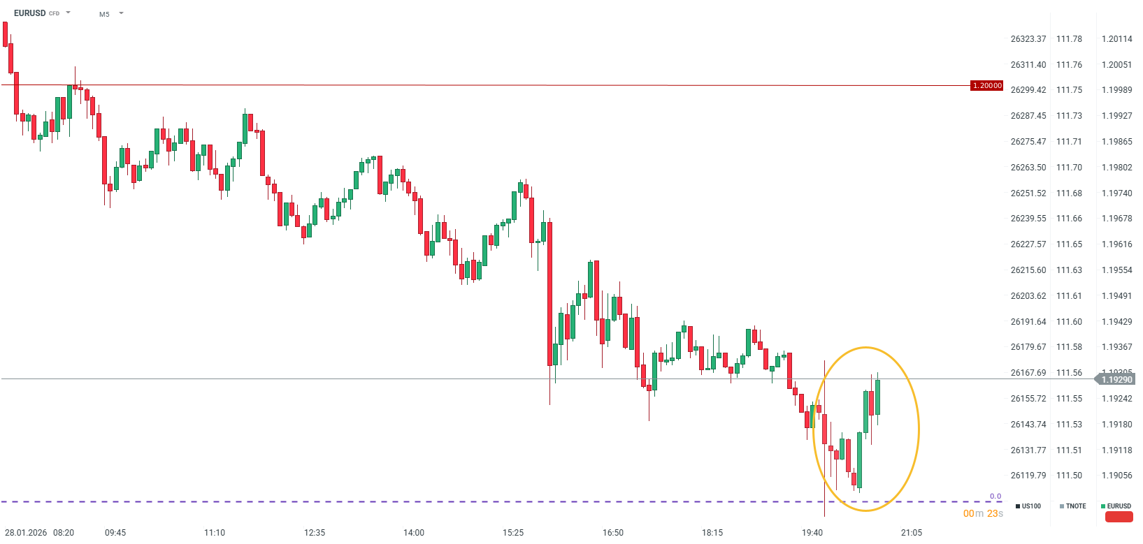 EURUSD reaguje na wsparcie na 1,1900. Powell wskazuje, że obniżki są wciąż obecne, ale główny wydźwięk to jednak "wysoko na dłużej".