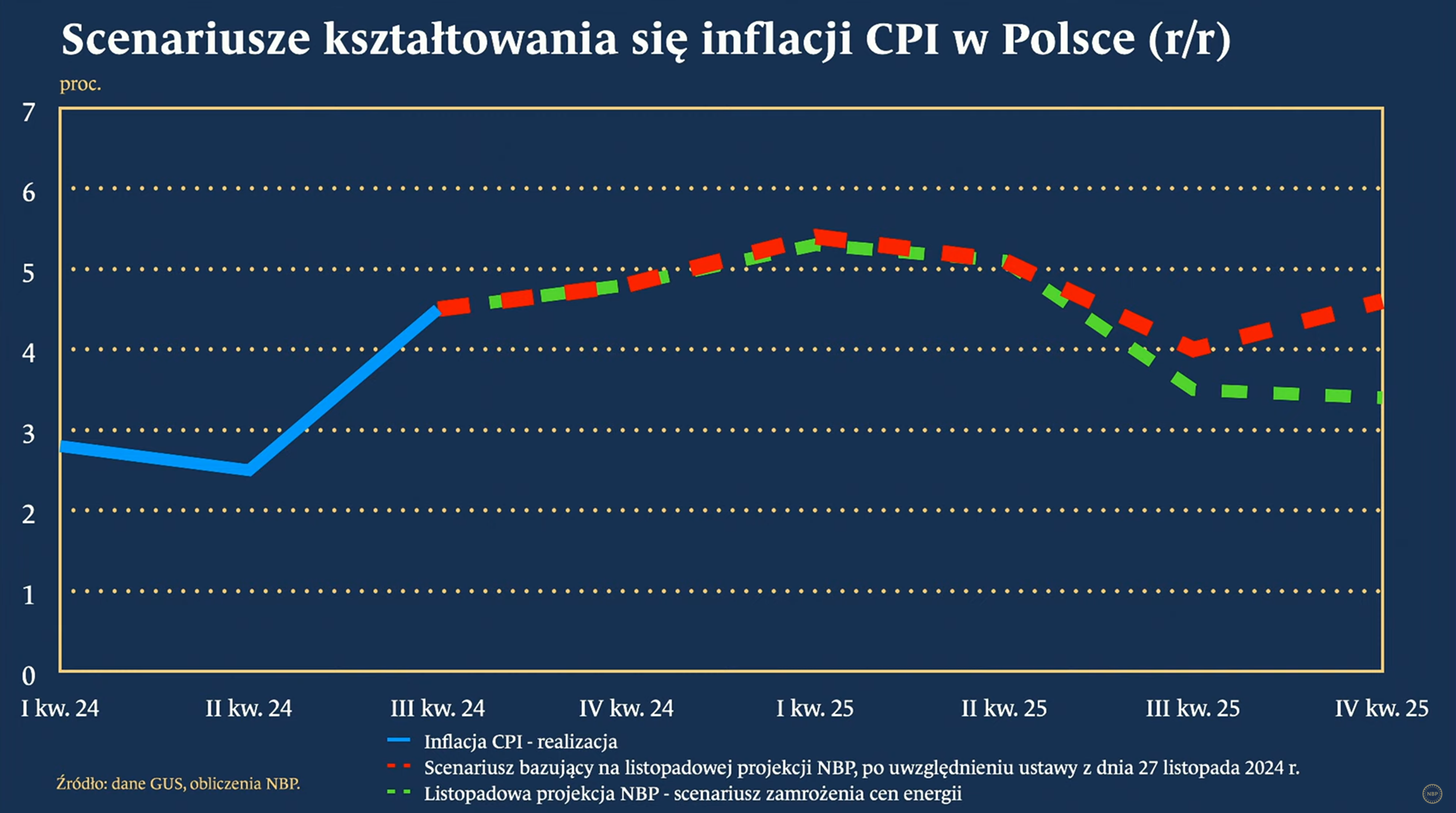 - W pierwszej połowie 2025 r. inflacja może pozostać w okolicy 5%, z potencjałem do wzrostu w 4 kwartale.