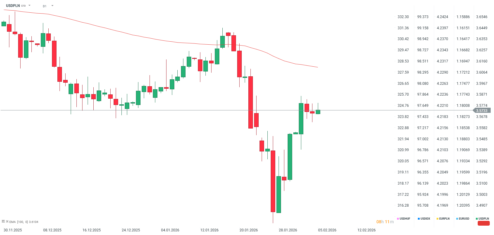 USDPLN w ciągu dnia pozostaje bardzo spokojny. Na tle ogromnej zmienności na rynkach finansowych, polski złoty pozostaje bezpieczną przystanią. Ogólnie na rynku walutowym obserwujemy sporą wyprzedaż funta wobec gołębiej postawy BoE pomimo wstrzymania stóp, euro zareagowało wzrostem na jastrzębie komentarze Lagarde, natomiast NOK traci przed spadek ropy.