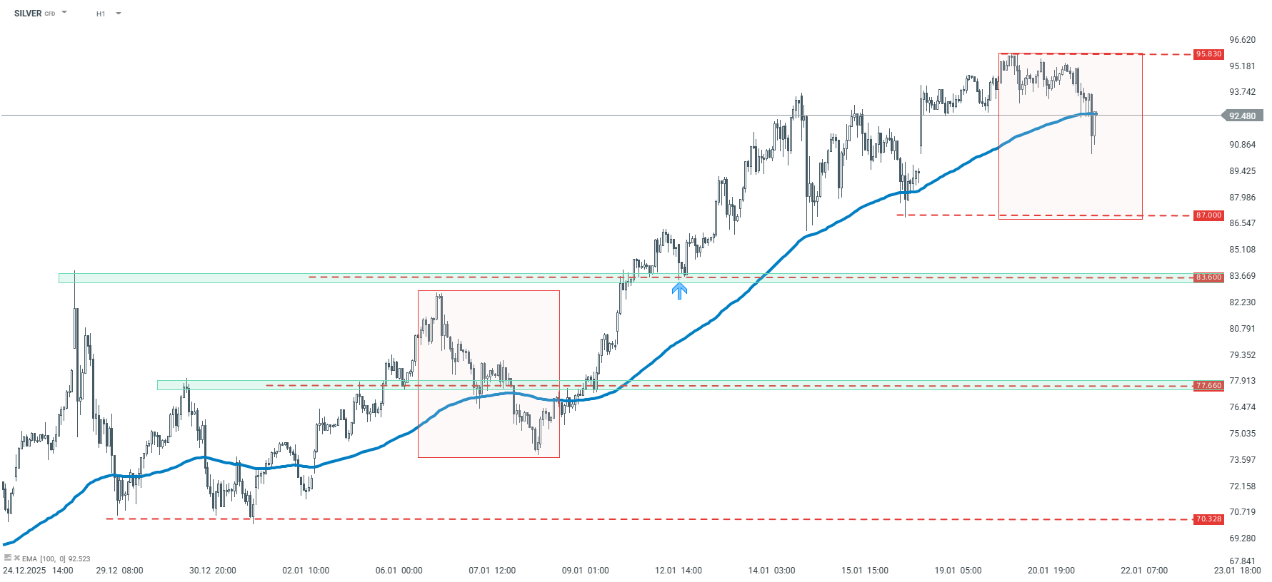 SILVER – interwał H1. Źródło: xStation