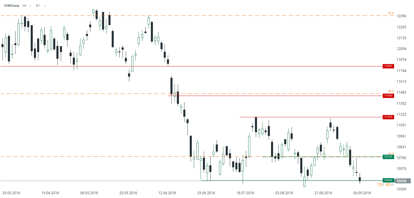 Chiński Hang Seng porusza się nad przepaścią. Źródło: xStation5.