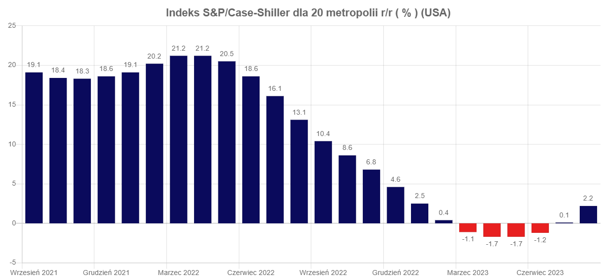 - Indeks cen domów jednorodzinnych S&P Case/Schiller 20 letni: 2,16% vs 1,75% prognoz i 0,13% poprzednio