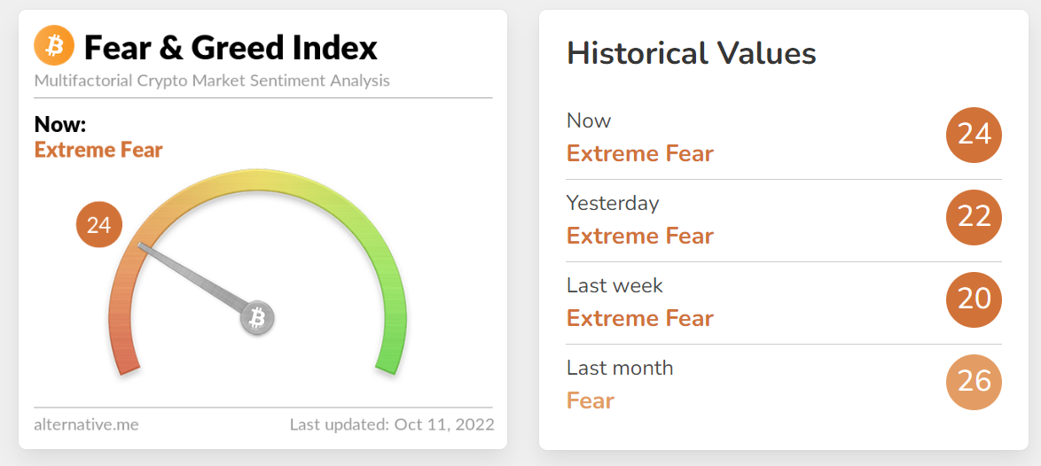 Indeks strachu i chciwości wciąż wskazuje na ekstremalny strach. Źródło: alternative.me
