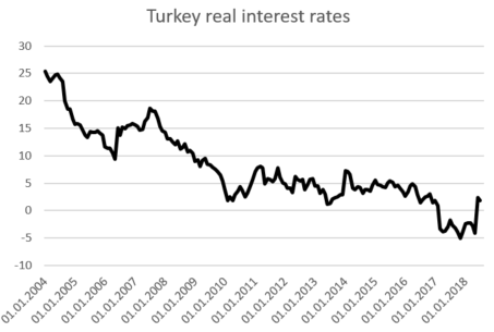 Nawet jeśli relacje z USA ulegną poprawie Turcja będzie potrzebował okresu dodatnich, realnych stóp procentowych (stopa banku centralnego minus roczna inflacja). Podwyżka stóp procentowych w maju była dobrym znakiem, jednak ostatnie wydarzenia zwiastują dalszy wzrost inflacji i potrzebę kolejnych podwyżek. Im dłużej będzie trwał kryzys, tym bardziej będą musiały być podnoszone stopy procentowe niosąc ryzyko osłabienia gospodarki. Receptą na kryzys może być zawarcie porozumienia z USA i pozwolenie bankowi centralnemu działać, mając nadzieję że wszystko się ułoży. Problemem jest to, że Recep Erdogan ma swój punkt widzenia na całą sytuację...