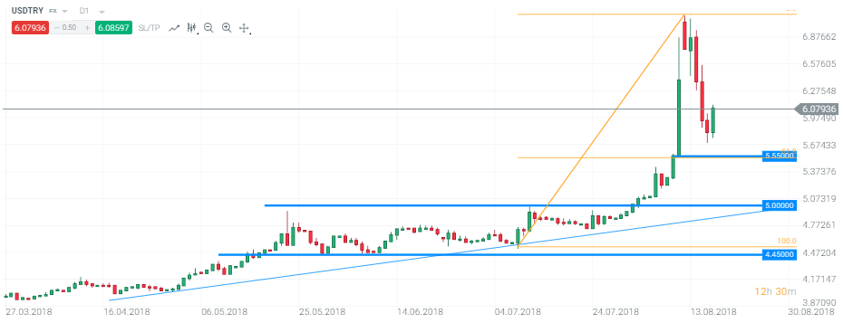 6. USDTRY - pierwsze wsparcie przy 5,55