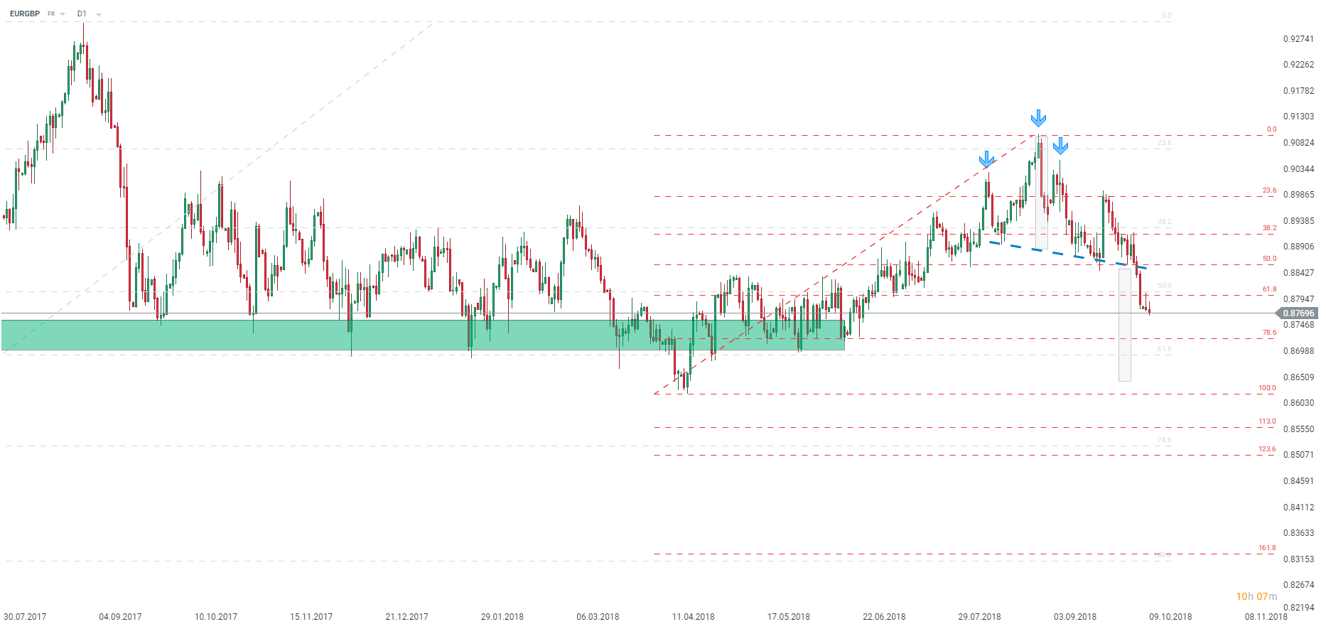 Para EURGBP kontynuuje spadki, choć nie jest to związane z progresem dotyczącym Brexitu. Źródło: xStation5