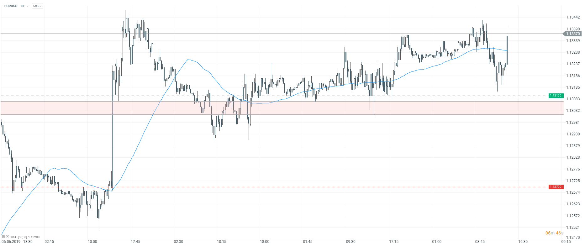 W pierwszej reakcji po danych kurs EURUSD rośnie około 15 pispów. Tym samym zblizamy się do szczytów z 7 czerwca.