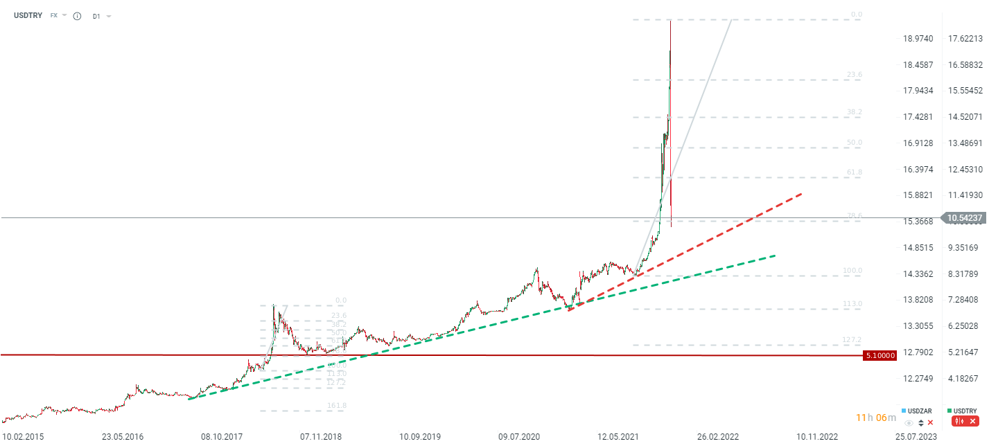 Para USDTRY od swojego szczytu spadła o ponad 40%, co jest wynikiem zapowiedzi narzędzi stabilizujących lirę przez Erdogana. Więcej o tym pisaliśmy we wczorajszym market alercie. Dzisiaj opublikowano minutes CBRT po ostatniej decyzji, podczas której obniżono stopy o 100 punktów bazowych, co w tamtym czasie doprowadziło do kontynuacji szalonych wzrostów. CBRT w minutes wskazuje również, że inflacja będzie bardzo zmienna w krótkim terminie, a ocena wpływu ostatnich działań będzie sporządzona w Q1. CBRT wskazuje, że zamierza używać wszelkich narzędzi do obniżenia inflacji, choć trudno oczekiwać tego, że obniżki stóp procentowych miałyby do tego doprowadzić.