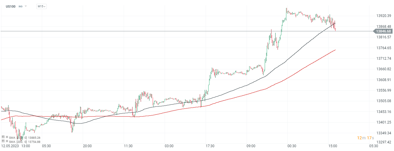W czasie przemówienia Powella kontrakty na Nasdaq (US100) tracą blisko 0,5%