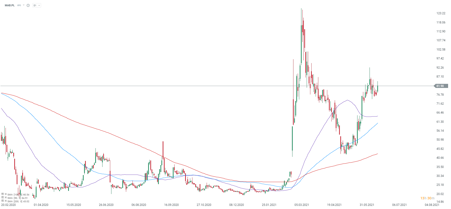 Mabion zyskiwał dzisiaj nawet 9%. Źródło: xStation5