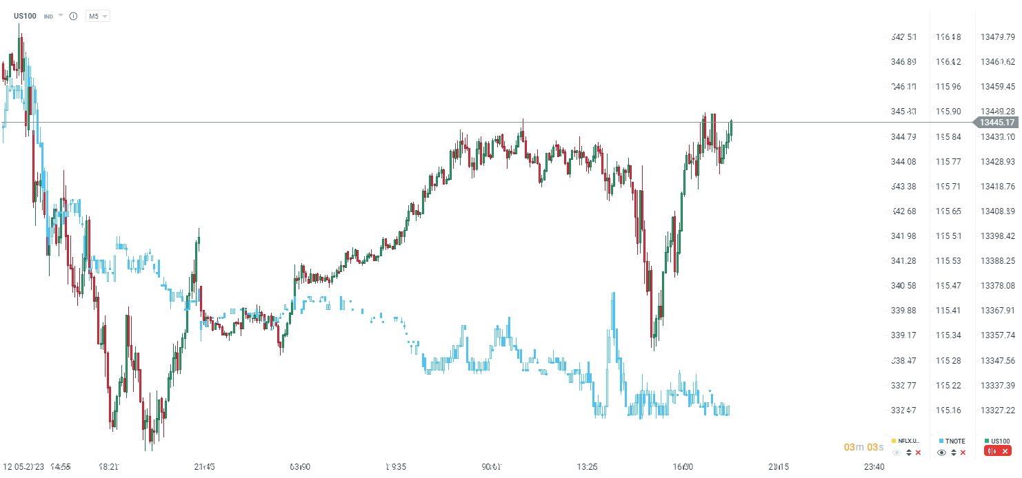Spiker Izby Reprezentantów, w której większość mają Republikanie wskazuje, że nie widzi żadnych ruchów w celu osiągnięcia porozumienia w sprawie limitu zadłużenia. Oficjalne rozmowy mają odbyć się jutro. US500 jednak nie reaguje i kontynuuje wzrosty. Rentowności pozostają dzisiaj relatywnie wysoko.