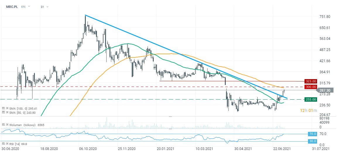 Mercator Medical (MRC.PL), interwał D1, skala logarytmiczna. Źródło: xStation5