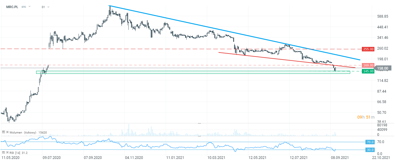 Sytuacja jest warta uwagi, gdyż po dzisiejszej sesji spółka przedstawi swój raport półroczny - na jutrzejszej sesji należy zatem oczekiwać istotnie podwyższonych obrotów. Uwaga inwestorów skupi się oczywiście na konferencji wynikowej i omówieniu sytuacji na rynku rękawic. Czy ceny dalej spadają? Po jakich cenach zawierane są obecnie kontrakty? Jak kształtuje się popyt i jak wygląda kwestia rozbudowy mocy produkcyjnych grupy Mercator Medical? Inwestorzy będą próbowali znaleźć odpowiedzi między innymi na te pytania.