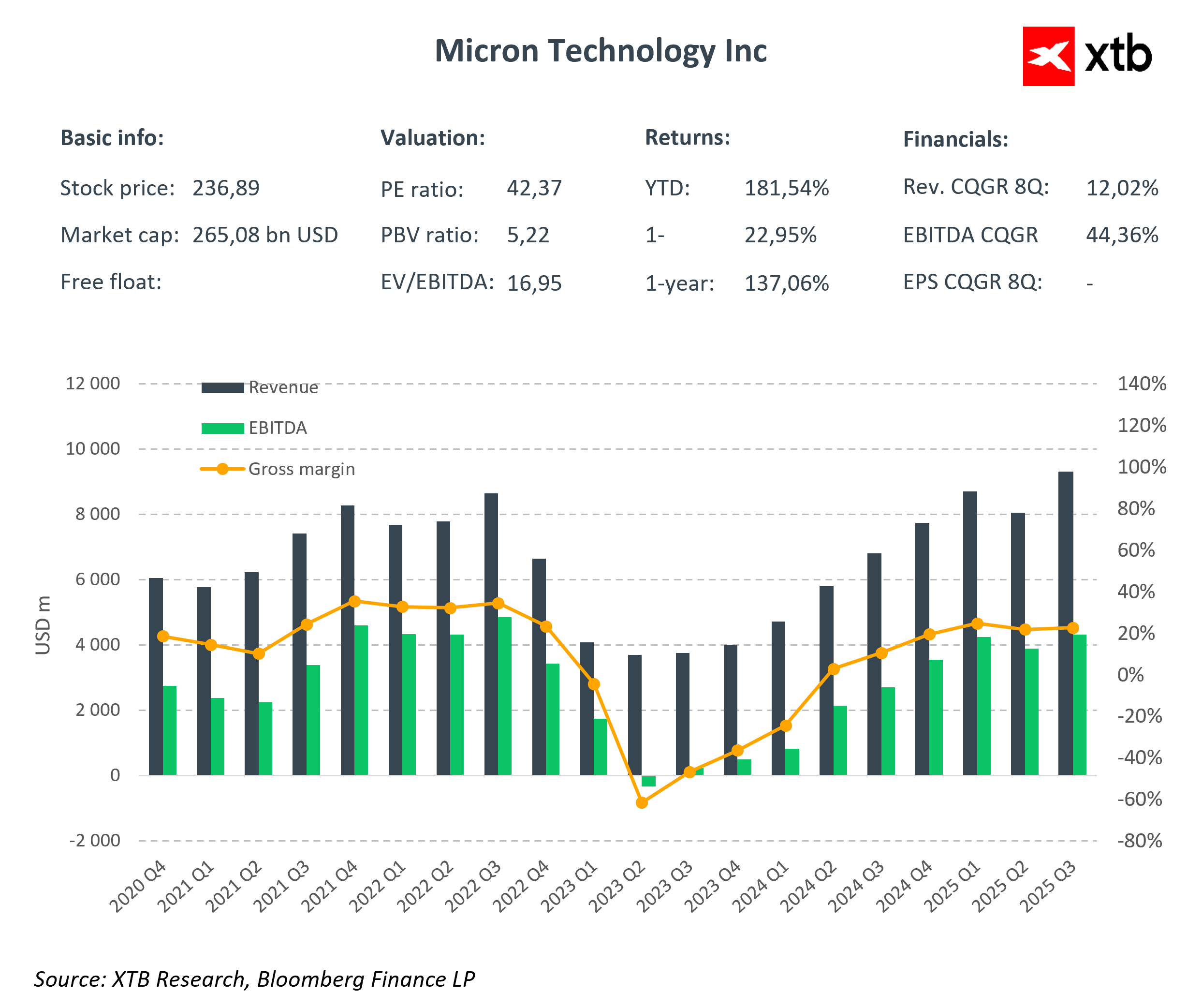 Pomimo wzrostu kursu akcji o 180 procent w tym roku eksperci uważają, że spółka może jeszcze znacząco zyskać dzięki utrzymującemu się popytowi na DRAM i HBM w segmencie sztucznej inteligencji.