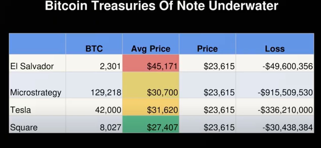 Michael Saylor zdecydował o skupowaniu BTC przez spółkę w 2020 roku. Pozycja niedawno jeszcze była warta blisko 4 mld USD, obecnie jest to ok 2,9 mld USD. Niezrealizowana strata wynosi już ponad 1 mld USD;