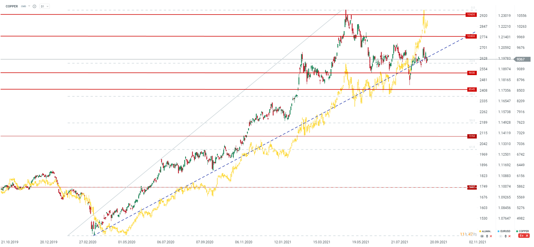 Miedź lekko odbija, a aluminium powraca do mocniejszych wzrostów. Źródło: xStation5