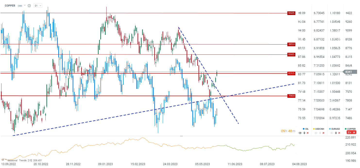 Na te wieści obserwujemy wyraźne odbicie miedzi oraz ropy. Co ciekawe od początku roku obserwujemy wyraźną korelację między tymi surowcami, gdyż ich perspektywy w dużej mierze zależą od obecnego chińskiego ożywienia.