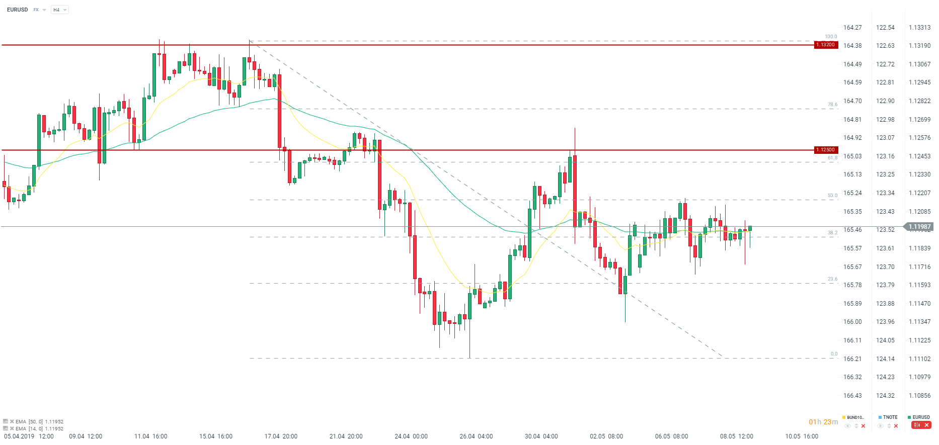 Dolar nie reaguje mocno na dane. Widać jednak, że rozczarowanie inflacją bazową może być odczytywane negatywnie przez inwestorów, co może zwiększać presję na bank centralny do bardziej gołębiego stanowiska. Źródło: xStation5