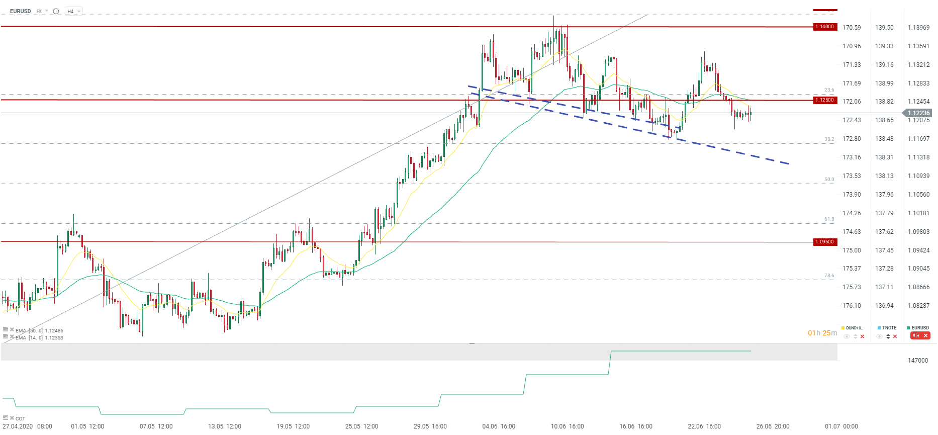 Zmienność na EURUSD jest mocno ograniczona. Widać brak konkretnego sygnału do ruchu w jedną lub drugą stronę. Źródło: xStation5