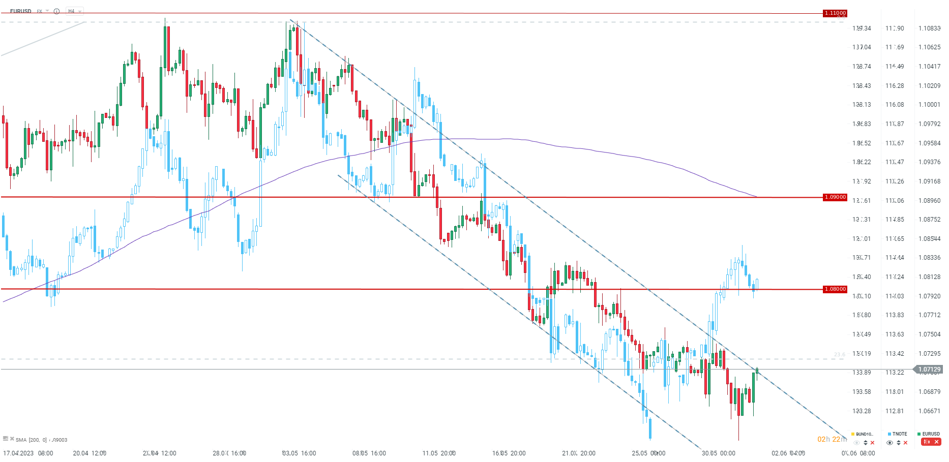 EURUSD minimalnie rusza do góry. Minutes nie przynoszą nic nowego, ale z pewnością nie są gołębie, podobnie jak dzisiejsza wypowiedź Lagarde.