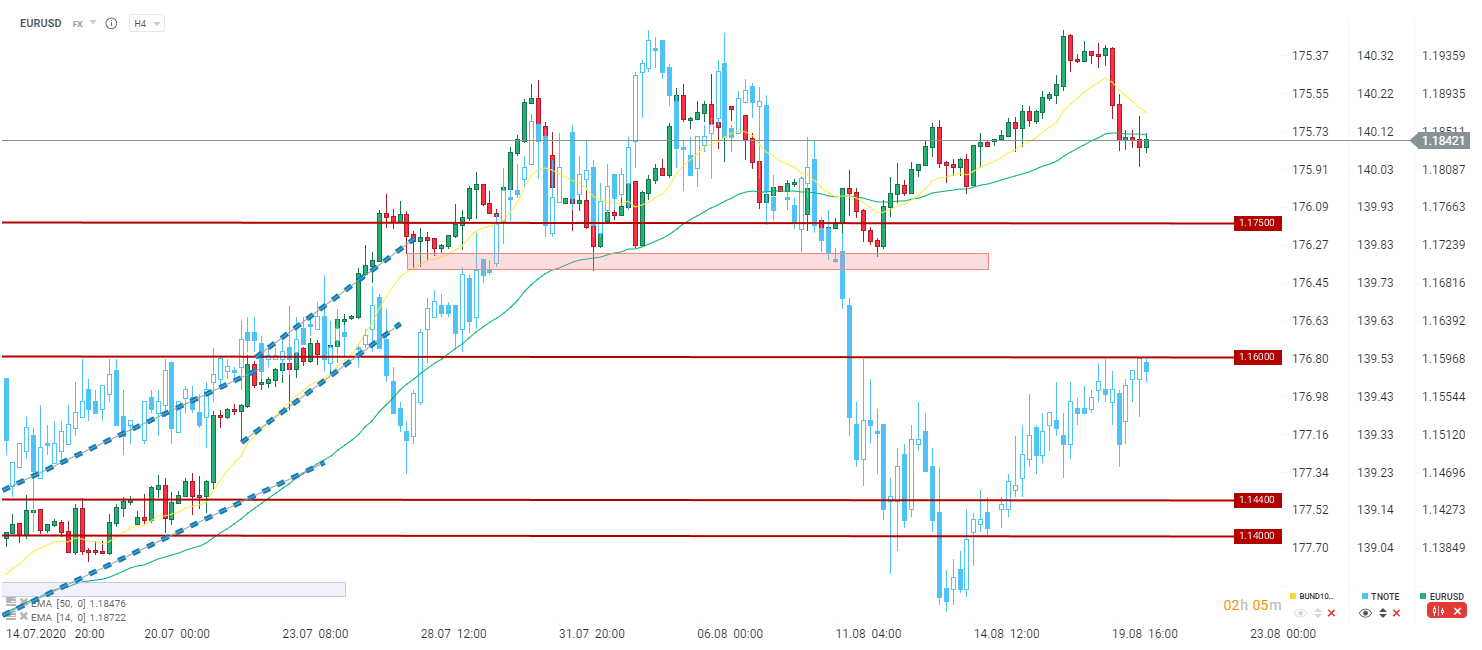 Jedno z ważniejszych stwierdzień dotyczy spejcalnego "pandemicznego" programu skupu aktywów PEPP. Niektórzy członkowie uważają, że cel zakupów powiniene być raczej "sufitem" niż poziom, który EBC chce w pełni wykonać. Minutes wskazuje jednak, że EBC w całości chce ten program wykorzystać w pełni. Więcej na temat dalszej ścieżki inflacyjnej będzie wiadomo we wrześniu. To samo tyczy się dalszej ścieżki gospodarczej, która będzie wiadoma po ocenie większej ilości danych.