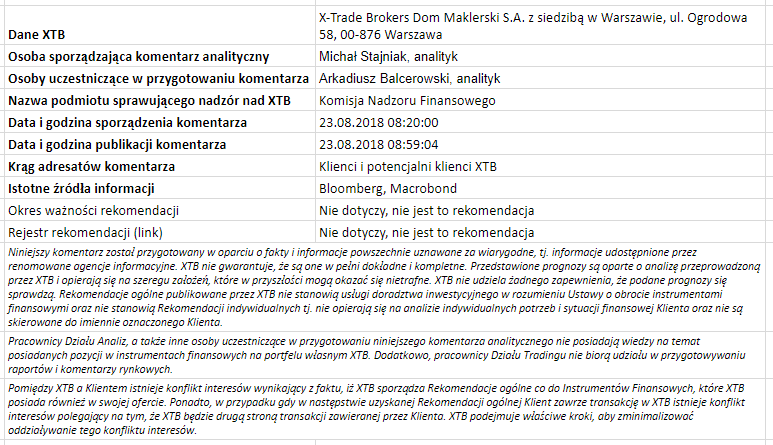 Ta publikacja handlowa jest informacyjna i edukacyjna. Nie jest rekomendacją inwestycyjną ani informacją rekomendującą lub sugerującą strategię inwestycyjną. W materiale nie sugerujemy żadnej strategii inwestycyjnej ani nie świadczymy usługi doradztwa inwestycyjnego. Materiał nie uwzględnia indywidualnej sytuacji finansowej, potrzeb i celów inwestycyjnych klienta. Nie jest też ofertą sprzedaży ani subskrypcji. Nie jest zaproszeniem do nabycia, reklamą ani promocją jakichkolwiek instrumentów finansowych. Publikację handlową przygotowaliśmy starannie i obiektywnie. Przedstawiamy stan faktyczny znany autorom w chwili tworzenia dokumentu. Nie umieszczamy w nim żadnych elementów oceniających. Informacje i badania oparte na historycznych danych lub wynikach oraz prognozy nie stanowią pewnego wskaźnika na przyszłość. Nie odpowiadamy za Twoje działania lub zaniechania, zwłaszcza za to, że zdecydujesz się nabyć lub zbyć instrumenty finansowe na podstawie informacji z tej publikacji handlowej. Nie odpowiadamy też za szkody, które mogą wynikać z bezpośredniego czy też pośredniego wykorzystania tych informacji. Inwestowanie jest ryzykowne. Inwestuj odpowiedzialnie.