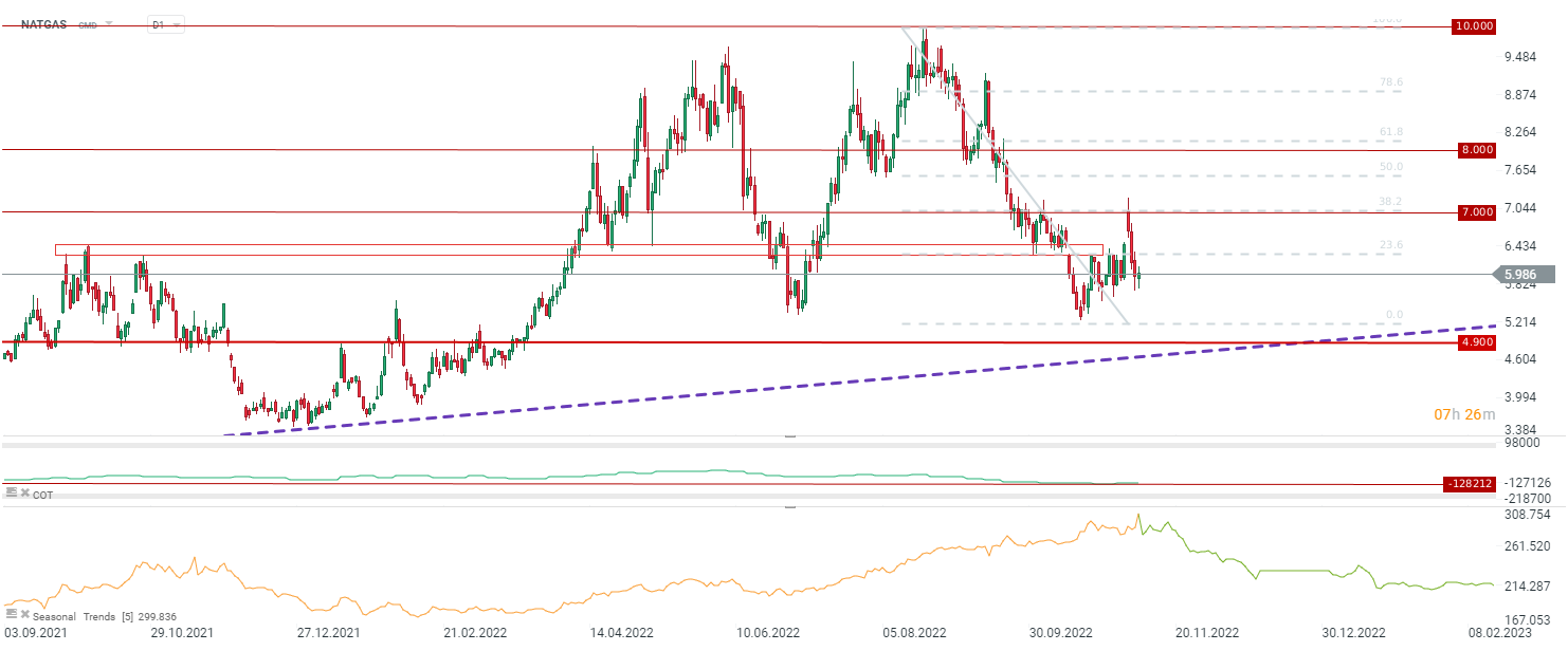 Zapasy gazu rosną o 79 bcf przy oczekiwaniu wzrostu o 84 bcf oraz przy poprzednim wzroście o 107 bcf. Widać, że zaczyna się sezon grzewczy w USA. Niemniej ceny gazu mocno spadły w ostatnim czasie, ale wydaje się, że mogą zaliczyć wsparcie w okolicach 6,00 USD/MMBTU. Dodatkowo obserwujemy wyraźne odbicie cen ropy po słabszej od oczekiwań inflacji w USA, co również może wspierać ceny gazu.