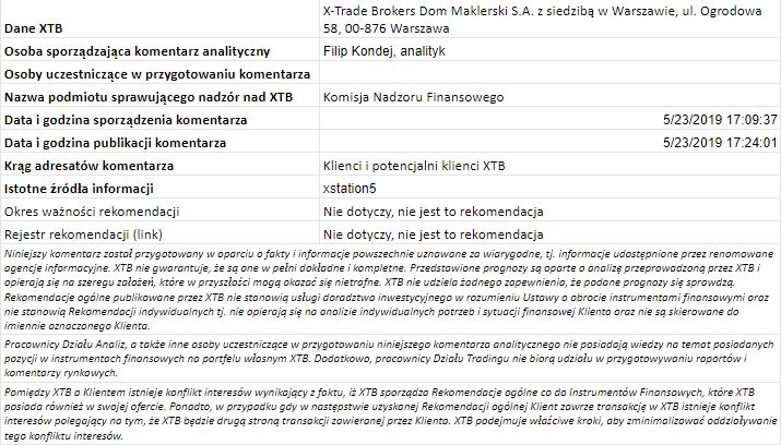 Ta publikacja handlowa jest informacyjna i edukacyjna. Nie jest rekomendacją inwestycyjną ani informacją rekomendującą lub sugerującą strategię inwestycyjną. W materiale nie sugerujemy żadnej strategii inwestycyjnej ani nie świadczymy usługi doradztwa inwestycyjnego. Materiał nie uwzględnia indywidualnej sytuacji finansowej, potrzeb i celów inwestycyjnych klienta. Nie jest też ofertą sprzedaży ani subskrypcji. Nie jest zaproszeniem do nabycia, reklamą ani promocją jakichkolwiek instrumentów finansowych. Publikację handlową przygotowaliśmy starannie i obiektywnie. Przedstawiamy stan faktyczny znany autorom w chwili tworzenia dokumentu. Nie umieszczamy w nim żadnych elementów oceniających. Informacje i badania oparte na historycznych danych lub wynikach oraz prognozy nie stanowią pewnego wskaźnika na przyszłość. Nie odpowiadamy za Twoje działania lub zaniechania, zwłaszcza za to, że zdecydujesz się nabyć lub zbyć instrumenty finansowe na podstawie informacji z tej publikacji handlowej. Nie odpowiadamy też za szkody, które mogą wynikać z bezpośredniego czy też pośredniego wykorzystania tych informacji. Inwestowanie jest ryzykowne. Inwestuj odpowiedzialnie.