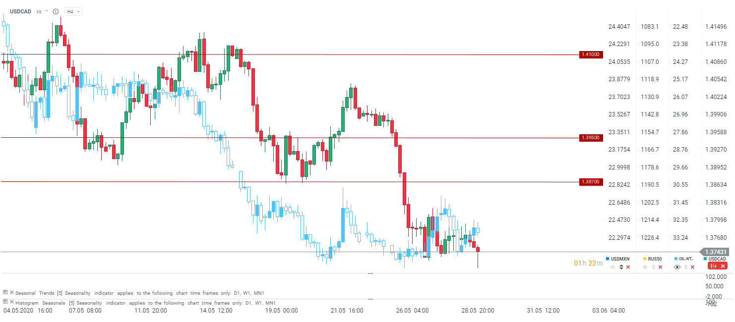 Annualizowany wskaźnik PKB w Kanadzie za Q1 wskazuje na spadek na poziomie 8,2% przy oczekiwaniu spadku na poziomie 10%. W samym marcu, czyli zaraz na początku epidemii PKB miesięczny spadł o 7,2% przy oczekiwaniu spadku na poziomie 9% m/m. W ujęciu rocznym w I kwartale, spadek wyniósł 5,8% r/r, natomiast kwartalnie 2,1% k/k. Warto pamiętać, że kanadyjska gospodarka w dużej mierze zależy od cen ropy naftowej, dlatego drastyczny spadek w marcu przysłużył się do głębszej recesji, niż miało to miejsce w Q1 w Stanach Zjednoczonych.