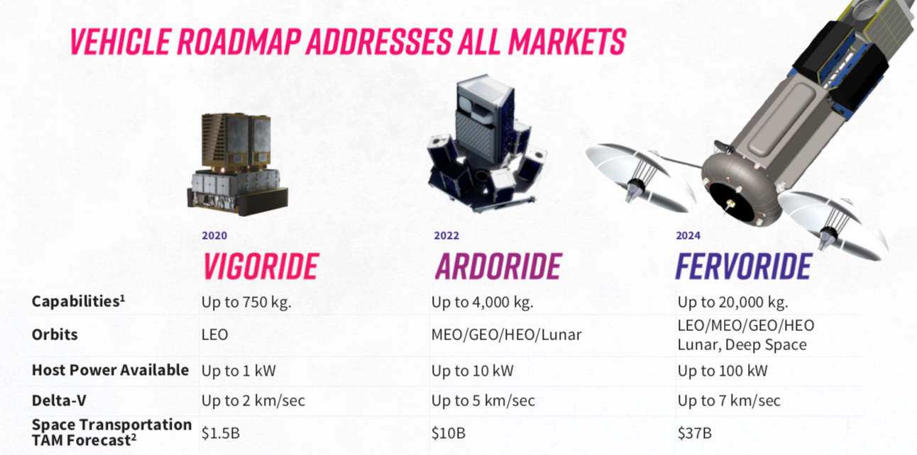 - W przeszłości spółka była określana mianem 'kosmicznego DHL' ze względu na specyfikację flagowych pojazdów Vigoride, które mają ograniczać koszty wysyłania towarów i obciążenia w kosmos oraz świadczyć usługi in-service w przestrzeni kosmicznej. Pojazdy Vigoride mają być zdolne pokonywać opór grawitacji i manewrować w przestrzeni kosmicznej dzięki rewolucyjnemu napędowi opartemu na plaźmie wodnej. Od grudniowej misji wiele zależy ponieważ poprzednio wystrzelenie Vigoride latem nie powiodło się z powodów technicznych i pogłębiło przecenę i tak potężnie wyprzedanych walorów firmy;
